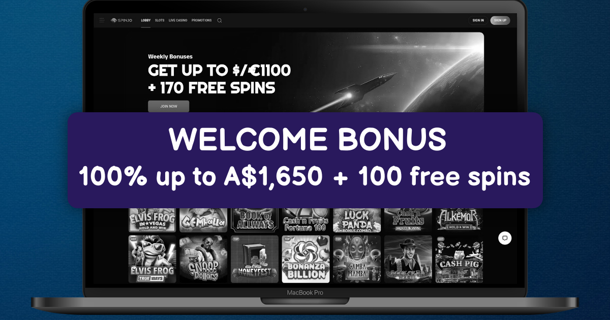 Claim your welcome bonus now and start your Spinjo Casino journey with extra funds and free spins.
